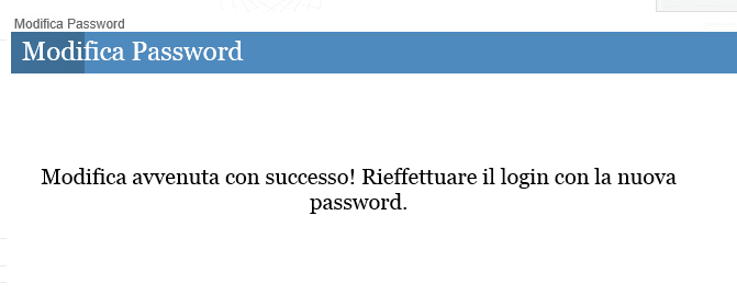 Se l’operazione è conclusa con successo apparirà il seguente messaggio “Modifica password avvenuta con successo !” :
